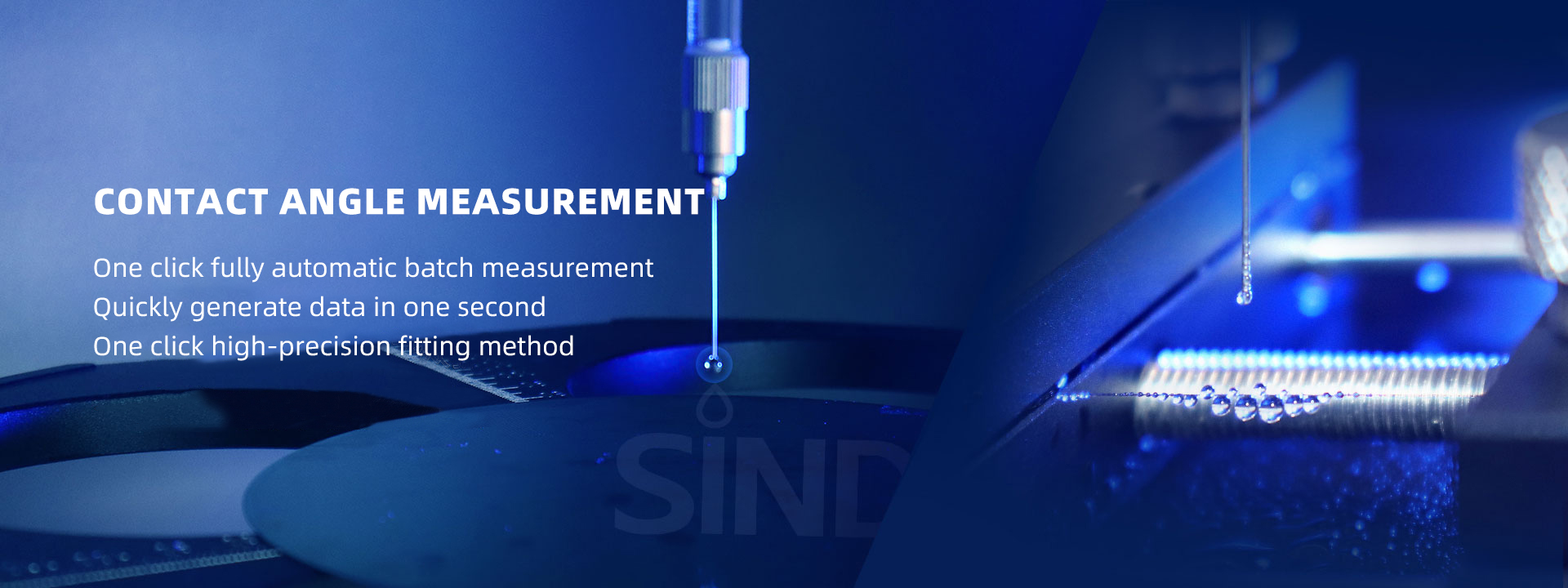 The contact angle measuring instrument mainly consists of five parts: control system, injection system, three-axis moving sample stage video acquisition system, and analysis software. The equipment adopts the principle of optical projection.